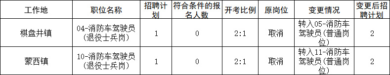 根据《鄂托克旗消防救援大队2025年公开招录政府专职消防员公告》和第一阶段报名情况,因部分岗位符合条件的报名人数未达到笔试开考比例,决定对下列岗位属性作出变更,现公告如下: